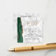 A borda esquerda deste elegante e moderno cartão de cerimônia de núpcias apresenta uma borda esmeralda verde aquarela, aparada com falso brilho dourado. O título aparece em um script de escrita manuscrita dourada, com texto personalizável abaixo na fonte da placa de impressão preta em uma cinza e fundo de mármore branco. Digite o URL do site de casamento para gerar um código QR para substituir a imagem de amostra no verso, enquadrado pelas palavras "digitalize-me para RSVP".