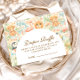 A whimsical watercolor design featuring a playful mix of pastel summer animals surrounded by tropical leaves, seashells, starfish, and soft botanical details. The cheerful palette of peach, mint, coral, and soft blue creates a light storybook atmosphere, while the elegant arch layout keeps the celebration details beautifully framed and easy to read. Perfect for a warm, joyful summer celebration with a charming nursery aesthetic.
