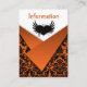 Este cartão de cercado de laranja, branco e casamento tema damasco preto tem um coração de asa preta que corresponde ao convite de casamento de Halloween mostrado abaixo. Você pode usá-lo como cartão de recepção, cartão de instruções, cartão de registro de presente ou cartão de alojamento de hotel, alterando o texto de acordo. Se houver outros itens correspondentes necessários, envie seu pedido por e-mail para niteowlstudio@gmail.com.