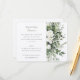 Este cartão de recepção de casamento é uma declaração de elegância subestimada, adornada com uma impressionante disposição lateral de rosas brancas e uma cascata de verde que apresenta tons que vão de celadão a verde caçador. O texto convidativo, apresentado numa fonte sofisticada, chama os convidados para uma noite de celebração, contra um fundo branco suave e limpo que permite que o detalhe floral realmente brilhe. A design é perfeita para transmitir o calor e a alegria da ocasião enquanto mantém um tema chico e botânico.