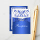 Este cobalto ou gabinete de recepção de casamento floral azul e branco ou cartão de inserção tem uma fita azul IMPRESSA e um arco com um par de joias de diamante IMPRESSAS e a brilha azul FAUX uniram corações que correspondem ao convite de casamento mostrado abaixo. Você também pode personalizá-lo para ser um cartão de instruções, um cartão de registro de presente, um cartão de poço de desejo, um cartão de acomodação, um site de casamento ou outro cartão de informação, alterando o texto personalizável. Se houver outros itens correspondentes necessários, envie seu pedido por e-mail para niteowlstudio@gmail.com.