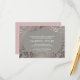 Este elegante cartão de rosa e recepção de casamento é perfeito para um casamento clássico. O design apresenta uma impressionante armação rosa-rosa-rosada num fundo de cinza escuro e é emparelhado com uma fonte encantadora e cursiva. Personalize este cartão de recinto detalhado com as informações de recepção e inclua também o endereço do seu site de casamento! Nota: Este design não apresenta folha de ouro rosa real. É um gráfico de alta qualidade feito para se parecer com ouro rosa brilhante.