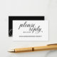 Roteiros Elegantes RSVP/Reply Online Card Insertions (Preto): economize dinheiro em suas placas rsvp, incluindo apenas cartões "online" para aqueles que você sabe o que fazer! Em seguida, inclua placas rsvp padrão para aqueles que não têm tanta tecnologia. Estas são pequenas inserções (tamanho de cartão de visita), mas elas são elegantes e amigáveis ao orçamento! O design está definido em preto, mas você pode alterá-lo para qualquer coisa que quiser alterando a cor de fundo: **HOW TO CHANGE YOUR DESIGN COLOR** 1) Clique no botão "Personalizar". 2) Clique no link "ClICK TO CUSTOMIZE FAIORE" (ClICK PARA PERSONALIZAR MAIS) na parte inferior. Então você terá a opção de mudar sua "COR DE FUNDO" para sua cor de casamento. Não se esqueça de mudar a cor do texto para corresponder ao seu design.
