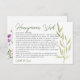 Eleve a apresentação do seu casamento com este cartão de inclusão moderno de poço das desejos com eucalipto em aquarela. A mistura sofisticada de folhas de eucalipto verde cria um cenário sereno para compartilhar seus desejos sinceros. Ideal para expressar gratidão e guiar seus convidados ao poço das desejos do casamento, este cartão de inclusão adiciona um toque elegante ao seu dia especial.
