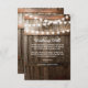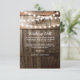 Cartão de poço de desejos de casamento country com um fundo de barril de madeira rústica, luzes de cordão cintilantes, seu monograma e um modelo de poço de desejos elegante editável.