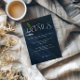 Compartilhe informações essenciais de casamento com este cartão de detalhes botânicos pretos, desenhado com uma estética moderada e inspirada em vintage. Com letras grandes, ousadas, tipografia e relevo botânico, esta carta combina elegância com uma reviravolta moderna, ideal para casamentos negros ou noturnos. Use-o para fornecer aos convidados detalhes sobre acomodações, direções ou outras informações importantes em um estilo sofisticado. Esta carta traz um toque coeso e dramático para a sua suíte de casamento.