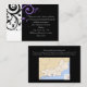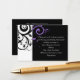 Pequeno cartão de RSVP para combinar com o nosso convite de casamento preto e branco com redemoinho roxo reverso, com fundo de folha de pergaminho gráfico em negrito. Personalize online com os detalhes do seu casamento.