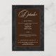 Entra num mundo de elegância escura com o nosso cativo cartão de cerimônia de detalhes do casamento gótico. Contra um espantoso papel de parede floral preto-a-preto satin vintage, este convite expele um ar de mistério e charme de eterno. O fundo da caixa de texto em marrom numero rico adiciona um toque de cor. Com fontes antigas e um olhar envelhecido que exude sofisticação, esta design é uma combinação perfeita de atração do mundo antigo e apelo contemporâneo. Assuma o alento do passado e convide seus convidados a testemunhar um amor que transcende o tempo com esta design de casamento gótico cativante. Criado pela imprensa simplesmente de farmácia.
