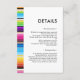 Um cartão de detalhes mínimo de convidado com faixas de serape de cor de primavera.