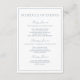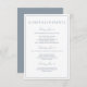 Um cartão clássico, elegante e empoeirado de cerimônias de casamento, detalhando a programação dos eventos, com a caligrafia dos scripts. Perfeito para a noiva moderna ter um caso formal. Parte de uma suíte correspondente. Consulte a coleção de cheios aqui: https://www.zazzle.com/collections/elegant_dusty_blue_classic_script_wedding-119277300212576021 Copyright Elegant Invites, todos os direitos reservados.