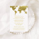 Cartão De Informações Recepção de casamento de Mapa do Mundo Dourado Ele