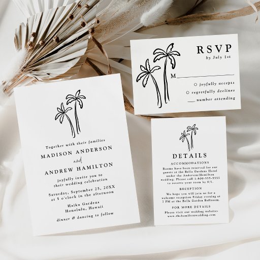 Modern Hand-Drawn Black Palm Trees WeddingCriado por Jessica Letterman