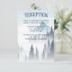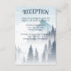 Uma misteriosa floresta de cinzas, acentuada com um romântico nevoeiro branco ao redor dos pinheiros e da montanha ao fundo, faz uma recepção de casamento de natureza selvagem excelente para uma cerimônia de inverno nas montanhas. A elegante tipografia mostra todos os bonés com uma bela assinatura florescendo nas letras maiúsculas. Adicione detalhes de acomodação ou outras informações de convidado neste cartão de compartimento.