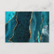 Esta elegante placa de gabinete de recepção de casamento moderna apresenta uma coloração aquosa azul-lacrimejante agata imagem de fundo cortada com falso brilho dourado. O título aparece no script de escrita manual, com texto personalizável abaixo na fonte de impressão dourada. O verso apresenta um design de chaleira e de agata dourada.