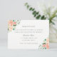Cartão de recepção de casamento elegante com um design floral suave em aquarela em tons de rosa, pêssego e verde. O texto em estilo clássico em cinza suave pode ser totalmente personalizado. Coleção de Casamento Correspondente na Loja Little Bayleigh!