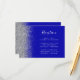 A borda esquerda desta elegante placa de gabinete de recepção de casamento moderna apresenta um design cintilante falso prateado. O texto personalizável combina manuscrito branco, fontes em copperplate e itálico em um fundo azul real. O verso apresenta um design brilhante real e prateado.