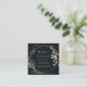Este cartão de recepção de casamento verde azul-dourado geométrico é perfeito para um casamento moderno. A design apresenta lindas folhas verdes pintadas manualmente em um fundo azul escuro, enfeitando uma armação geométrica dourada.