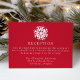 Preencha sua suíte de casamento com nosso Simples Cartão de Recepção de casamento Vermelha com Floco de Neve. Apresentando um floco de neve branco e ousado no topo e seus detalhes de recepção de casamento em letras nítidas de serifa branca em um fundo vermelho rico, este cartão é a adição perfeita aos casamentos de inverno, feriado e Natal. O design é simples, moderno e elegante, oferecendo uma na moda para compartilhar suas informações de recepção com os convidados.