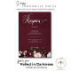 Entra num reino de elegância refinada com o nosso cartão floral escuro e de recepção de casamento temperamental. Concebido para cativar os sentidos, este convite apresenta um fundo arrojado impressionante, adornado com uma rotura espantosa de ricas rosas de burgundy e creme, hífenes de cinzas de lavanda pálidas e outros florais mistos em branco suave e rosa pálido, complementados por uma folhagem verde-oliva exuberante. O texto cremoso adiciona delicadamente um toque de romance ao fascínio geral. Abrace a opulência da estação e dê o tom para o seu dia especial com este design, que deixa uma impressão duradoura nos seus convidados. Criado pela imprensa simplesmente de farmácia.
