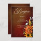 Celebre o início de sua eternidade com convites tão deslumbrantes quanto o próprio pôr do sol! Apresentando nosso impressionante cercado de recepção de casamento inspirado no pôr do sol adornada com um vibrante spray de flores realistas em tons de laranja, amarelo, vermelho e rosa, espelhando perfeitamente as cores de um pôr do sol pitoresco. Cada pétala e folha é meticulosamente trabalhada para exudir a beleza da natureza, com folhagem verde-senada escura que fornece o pano de fundo perfeito para as ferozes tonalidades das flores. O texto branco suave flutua delicadamente sobre um fundo ligeiramente angustiado de cor de cobre, adicionando um toque de elegância rústica aos seus convites. Criado pela imprensa simplesmente de farmácia.