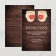 Cartão de recepção elegante com belas canecas monográficas de café com tipografia moderna contra um fundo de madeira de celeiro.
