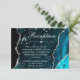 Cartão De Informações Recepção Teal e Prata com Brilho de Ágata Falsa