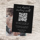 Cartão de anexo de foto digital simples e elegante para poço de desejos de casamento em um estilo de design minimalista moderno com uma tipografia de roteiro natural elegante em branco clássico sobre um fundo preto, com uma fonte de estilo de escrita informal. O design pode ser facilmente personalizado com seu título, detalhes de pagamento (Zelle, Venmo, Paypal), código QR escaneável, mensagem e foto para um design de casamento único e feito sob medida. A imagem mostrada é apenas para fins de ilustração e deve ser substituída por sua própria foto. A imagem de espaço reservado é de um casal feliz. Se precisar de ajuda para personalizar este produto, por favor entre em contato comigo usando o botão de mensagem e ficarei feliz em ajudar.