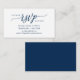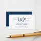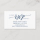 Cartão De Informações Resposta de RSVP de festa, Script Azul Naval Estét