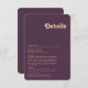 Este retrato moderno | detalhes roxos escuros com bordas arredondadas O cartão é perfeito para o seu simples casamento vintage, colorido de boho tropical no verão. Sua única fonte boêmica do século do médio dá a essa design uma víbora hippie minimalista clássica. Se você está procurando por uma design que apresente cores brilhantes e ousadas para o seu casamento criativo na praia dos 70, então esse produto, e sua coleção de casamento coordenada, é exatamente o que você está procurando. Sinta-se livre para mudar a cor adicionar seu próprio trabalho de arte, gráficos ou fotos. Se tiver alguma dúvida sobre a design deste produto, por favor sinta-se à vontade para nos contactar!