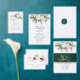 O verde do pinheiro com rosas brancas faz um elegante cartão de detalhes florais. Mais acentuado com bagas sutis e cones de pinho. A caligrafia aproveita a design para separá-la de forma simples, mas eficaz. É feminina e na moda, com uma paleta editada de branco, cor de rosa profundo e vermelho suave.