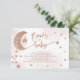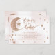 Uma pequena estrela está a caminho! Uma elegante, adorável e fofa estrela-Rosa de-ouro-relva-relva turva livros para o convite de chá de fraldas com bonito lua reluzente com uma estrela pendurada, um aglomerado de estrelas com cor-de-rosa-clara pastel leve e nuvens de água cinza com uma elegante tipografia de letra de pincel. Gravidez chá de fraldas neutra do ponto de vista do gênero, com a indicação de rosa, cinza, ouro e rosa,