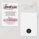 Inverta esses cartões de luxo no seu pedido para dizer um obrigado extra ao seu cliente e dar uma impressão profissional à sua pequena empresa ou loja de redes eletrônicas. Um bom obrigado que você anotar ao cliente para compra não só apreciará sua confiança em você, como os trará de volta para mais! Este design apresenta um "obrigado" preto em letra de escrita a negrito com escrita à mão contra um traçado de falso rosa dourado metálico (efeito impresso). Inclui três ícones de mídia social (removível) e campos para seu nome de usuário, contato e mensagem pessoal com código de desconto. Você pode facilmente adicionar seu logotipo no verso.