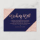 Cartão De Informações Rosa dourado script marinho azul que deseja bem