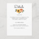 Este girassol rústico e os detalhes do casamento de rosas de terracota são perfeitos para um casamento no estilo country. Este cartão de detalhes apresenta florais de aquarelas em amarelo e laranja ferrugem com verde-sábio. Adicione todos os detalhes do casamento, como informações sobre recepção, informações sobre acomodações e seu site de casamento.