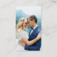 Placa RSVP de Casamento Simples Moderno e Minimalista com seu Código QR. Foto de volta. Fundo Azul.