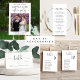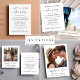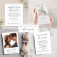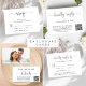 Cartão de cerimônia RSVP de casamento legante que apresenta "gentilmente resposta" em um script de troca de na moda. Introduza o endereço do Web site do casamento para criar um código QR que os seus convidados podem analisar para RSVP online. A parte de trás mostra sua foto sobreposta com seus primeiros nomes e a data do casamento juntos com um coração.