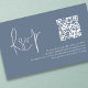 Dusty Blue White Script QR Code Wedding RSVP fazer de gabinete RSVP de Casamento é conveniente para seus hóspedes responderem digitalizando seu código QR levando ao seu site de casamento. Um tamanho MINI para anexar aos seus convites. O RSVP está em um script de estilo manuscrito de conjunto elegante e o resto do texto personaliza facilmente para você em branco em azul escuro Dusty. As cores de texto e de fundo podem ser alteradas conforme necessário através do botão editar mais. Adicione seu código QR à página de resposta do site do casamento para que seus convidados possam RSVP e ver todos os detalhes sem a necessidade de RSVP separado e cartões de detalhes. Basta alterar o URL de exemplo no modelo com o seu próprio URL da página escolhida do seu site de casamento e o seu código QR será gerado automaticamente para atualizar o código de amostra no design,