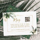 Este cartão de cercado RSVP de casamento apresenta folhagem tropical verde-aquarela, folhas de monstera, folhas de palmeiras, folhas de bananeira, folhas de ouro falsas e um código QR com um padrão tropical no verso. É perfeito para um casamento tropical, de verão, de praia ou de destino. Para uma personalização mais avançada deste design, clique no BOTÃO FERRAMENTA DESIGN AZUL acima. Itens correspondentes também estão disponíveis.