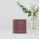 A borda esquerda deste elegante e moderno cartão de cerimônia de núpcias do casamento apresenta uma borda falsa dourada. O título aparece em um guião de escrita manuscrita dourada, com texto personalizável abaixo em letra copperplate num fundo burgundy escuro. Carregue o código QR do seu site de casamento para substituir a imagem de amostra no verso, enquadrado pelas palavras "digitalize-me para RSVP".