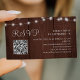 Rustic country brown barn wood evening lights wedding invite online RSVP QR code to website mini card enclosure.