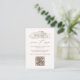 Cartões russos de cerimônias de casamento com uma ilustração marrom esboçada de um celeiro exibido no topo do convite em um fundo creme. Personalize o cartão RSVP de casamento do celeiro com a data de RSVP desejada e as instruções para como RSVP no seu site de casamento. Atualize o código QR com o URL desejado para que os convidados possam digitalizar e RSVP facilmente para o seu casamento ou outro evento especial.