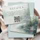 A serene nature-inspired wedding Details enclosure card with contemporary styling and a rustic look with a peaceful mountain lake misty forest scene in soft watercolors. A QR Code template to personalize with your wedding website connects your invited guests to all the details and allows them to RSVP online. Personalize with your desired text and wedding website URL.