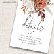 Rustic Terracotta Florals QR Code Detalhes de Casamento. Lindos florais autóctones estão no topo com um roteiro elegante para o cabeçalho. Adicione o seu código QR que irá para o seu site de casamento no verso para permitir que os seus convidados pesquisem e visualizem todos os detalhes, como instruções e informações de alojamento.