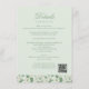 Sage green wedding details card featuring romantic script typography and soft floral accents. This customizable information insert includes celebration details, accommodations, RSVP instructions, and website information. Designed to coordinate beautifully with a garden inspired, cottagecore, or vintage wedding invitation suite.