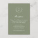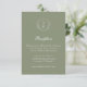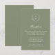 Esta simples e moderna carta de núpcias apresenta crista branca, folhas e texto em um fundo verde sábio. A parte de trás do cartão é verde-sábio. Esta é parte da coleção Simple Crest & Leaves.
