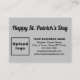 Feliz Dia de São Patrício! Outro feriado para comemorar este mês de março e anunciar também o seu negócio ou promover o seu nome de marca. Verde é sempre a cor para este feriado, mas experimente também outras cores. Placa de receptáculo a cores de cinza que você pode personalizar para colocar sua marca de negócios e com saudação ao Dia de São Patrick. Esta pode ser a cor que corresponde ao esquema de cores da sua empresa. Personalize-o e use-o para saudar seus clientes ou clientes neste Dia de São Patrício e como material marketing para anunciar sua empresa ou promover seu nome de marca. Você também pode usá-lo como acessório do material de embalagem do seu produto. Placa de gabinete personalizável que você pode usar para criar reconhecimento de nome de marca. Para personalizar esta placa de gabinete, carregue o logotipo da sua empresa, digite seu nome, endereço, número de telefone, e-mail e site ou a página de mídia social da sua empresa. Verifique a aparência nos lados frontal e traseiro após carregar o logotipo e os textos de digitação. Se a aparência lhe agrada, você pode colocar seu pedido agora. Se você precisar redimensionar e mover o logotipo e os textos para o ajustado nesta placa de compartimento ou no tamanho que você escolherá, mude na ferramenta design. Você também pode alterar a cor do plano de fundo, a cor da fonte e o estilo da fonte na ferramenta design. Desejando-lhe o melhor de sorte, alegria e mais vendas neste feriado.