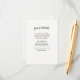 Este simples e na moda de carta de detalhes do convidado de casamento apresenta uma tipografia moderna de um roteiro preto sobre um fundo branco limpo, para um olhar minimalista que ainda faz uma declaração. Você pode usar esses cartões para incluir informações sobre sua recepção de casamento, direções de condução, acomodações e qualquer outra coisa que você precise que seus convidados saibam.