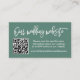 Script de Pincel moderno. Cartão de Gabinete de Site de Casamento Simples Minimalista com o seu Código QR. Eucalyptus Green