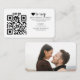 Simplifique o gerenciamento da sua lista de convidados com este cartão de acompanhamento moderno projetado para respostas digitais contínuas. A estética limpa apresenta um código escaneável para o site do seu casamento, um ícone de coração divertido e um layout de foto monocromático no verso. Fácil de personalizar com seus detalhes.