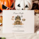 Este design neutro de chá de bebê de Halloween traz charme assustador com tons suaves de outono e detalhes caprichosos da floresta. Uma aconchegante cabana assombrada é cercada por fantasmas fofos, abóboras e morcegos — perfeito para uma celebração de bebê de outono com tema cottagecore e neutro em termos de gênero.